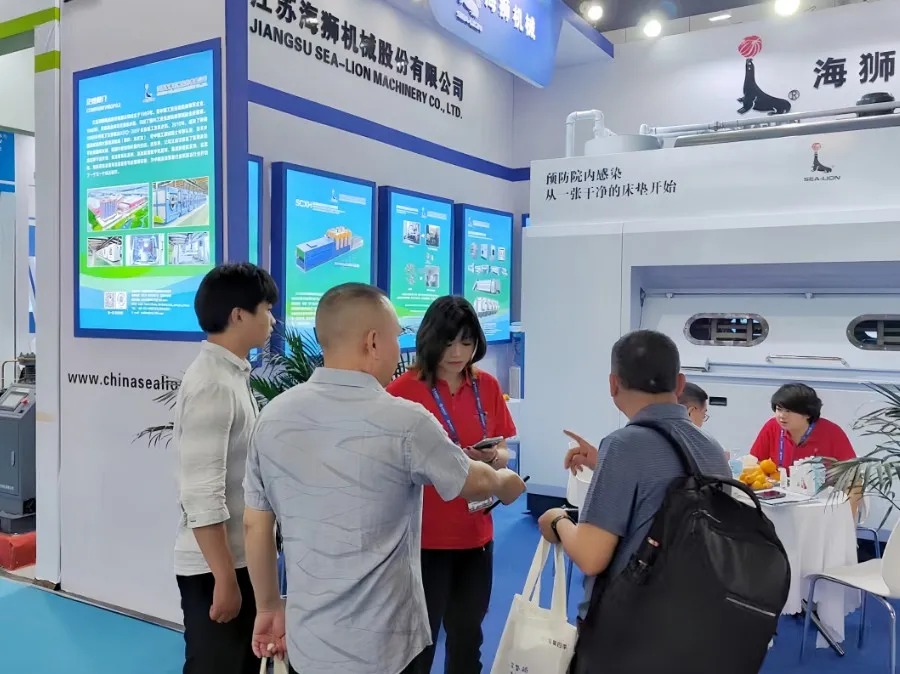 在本次展會上,海獅機械成為焦點。本公司擁有獨家知識產(chǎn)權(quán)的海獅醫(yī)用床墊一體機憑借獨特設(shè)計和卓越性能,贏得了參會者的高度贊譽。這款產(chǎn)品在醫(yī)用領(lǐng)域的獨特之處在于,它能夠解決醫(yī)院病房床墊難以批量清洗消殺的世紀(jì)難題,解決了醫(yī)用領(lǐng)域消殺全覆蓋的“痛點和盲點”,有效預(yù)防了醫(yī)院交叉感染風(fēng)險。
