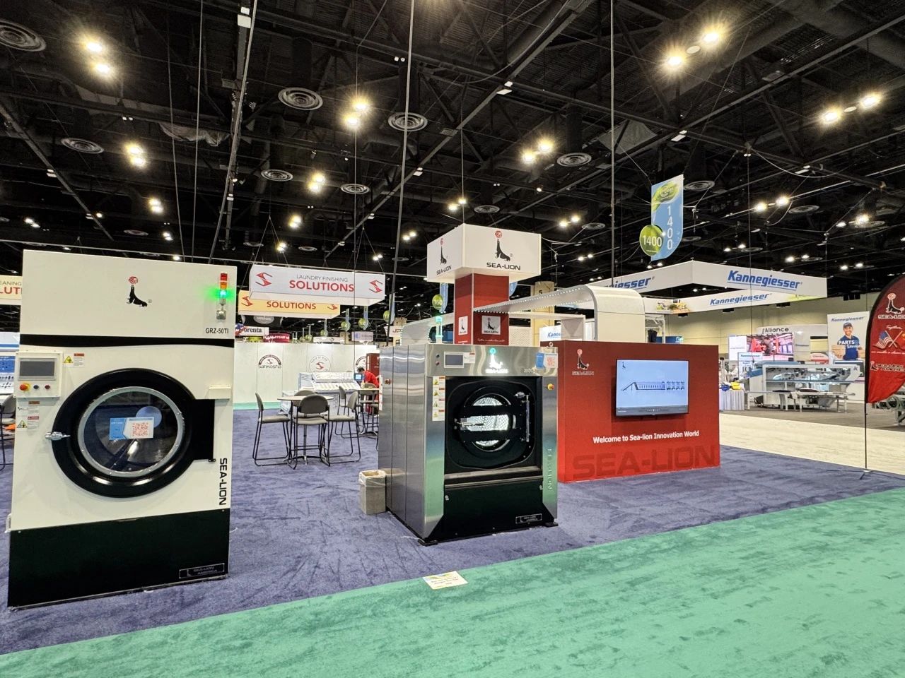 針對中小型洗滌廠普遍面臨的洗凈度問題、大型洗滌機構(gòu)的能源消耗難題,以及各大醫(yī)療衛(wèi)生機構(gòu)洗滌方案單一不全面等多種狀況。在本次國際盛會上,海獅機械集中展示了最新研發(fā)的高效節(jié)能洗滌烘干設備與智能化后整理設備,憑借在綠色環(huán)保、節(jié)能降耗、洗滌功效等方面的突出優(yōu)勢,成為展會焦點之一。